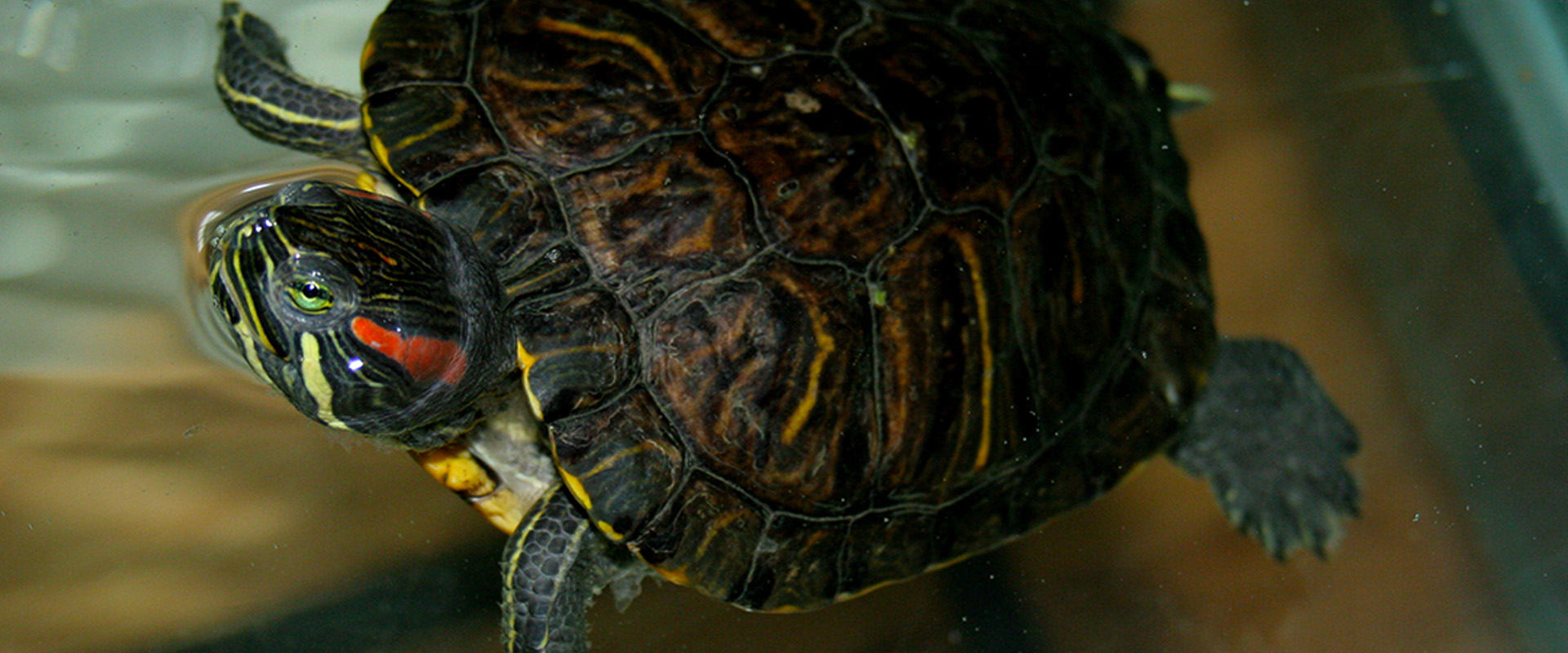 Our original pair of ambassador turtles, Shelley and Lady, have been with us since 2003. Over the years, we’ve added another three turtles – Lou, Elmira, and Sammie – to our aquarium in the MacEwan Field Station.