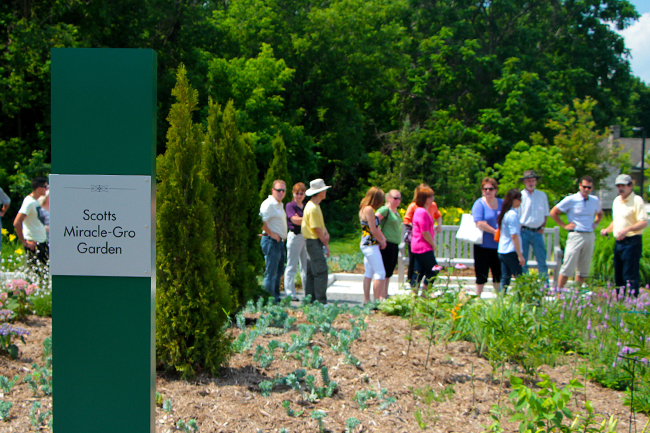 Staff members from Scotts Canada tour the Scotts Miracle-Gro Garden at Riverwood in the summer of 2016