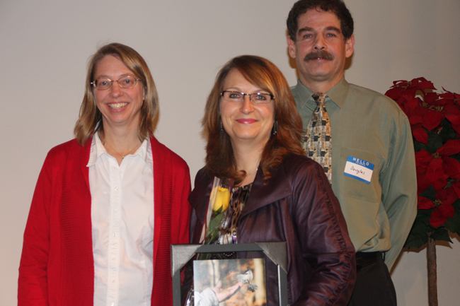 Karen Stephenson (center) alongside TRC's Robin Haley-Gillin (left) and Douglas Markoff (right) at TRC's 2011 Volunteer Awards