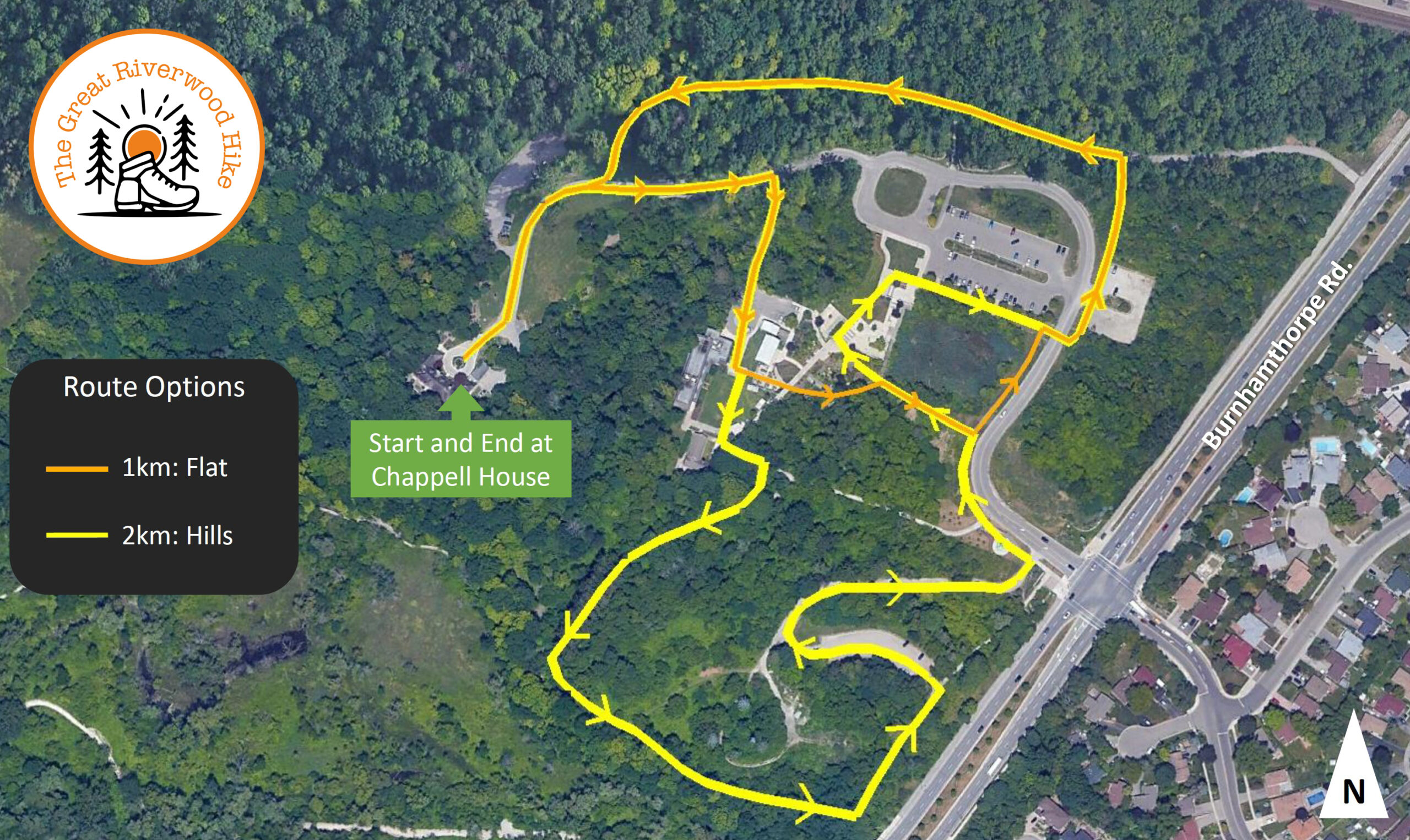 Parking is available at Riverwood in the Main Parking Lot, located adjacent to the MacEwan Terrace Garden. You can also park at the Erindale GO Station adjacent to Riverwood, just a short walk from the start/finish area.
